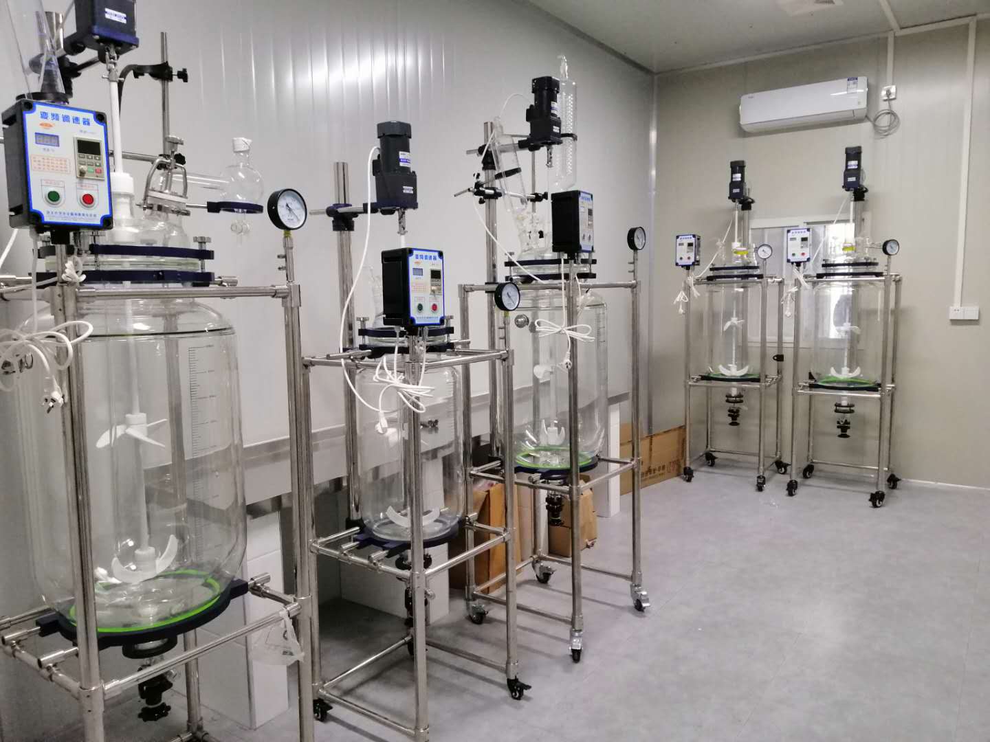 防爆托盤雙層玻璃反應(yīng)釜+高溫循環(huán)槽安裝現(xiàn)場(chǎng)